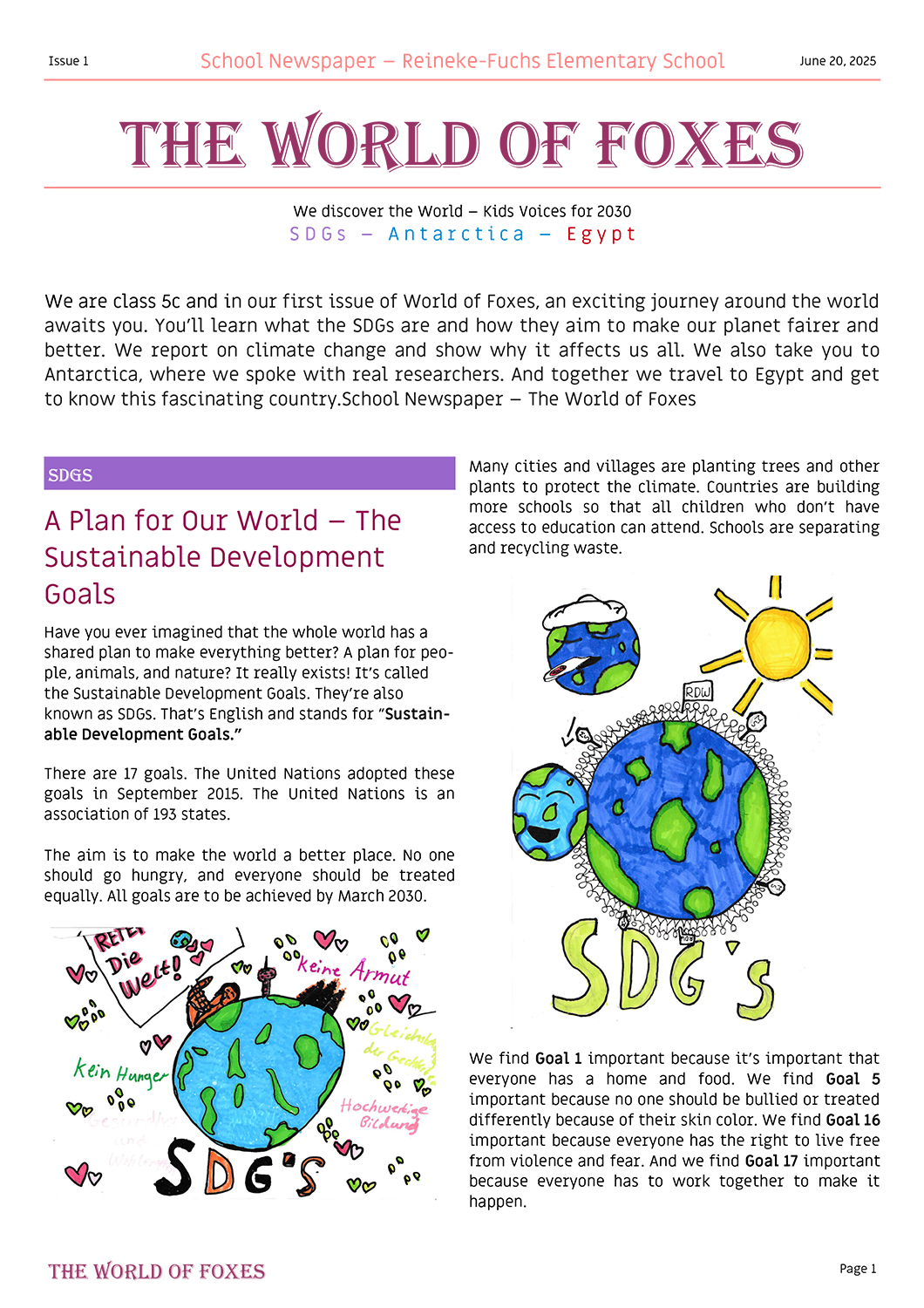 Here you can download our school newspaper “The World of Foxes” — just click on the image: