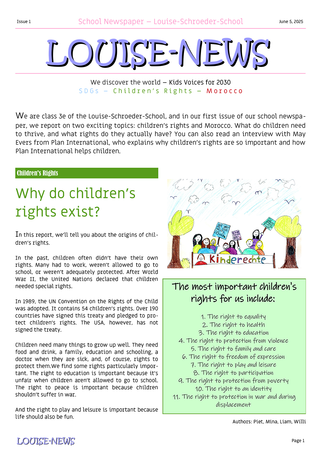 Both focus on two exciting topics: Morocco and children’s rights. So that we could share a lot, we researched, collected information, and prepared texts — for listening in the radio show and for reading in the "Louise News".
